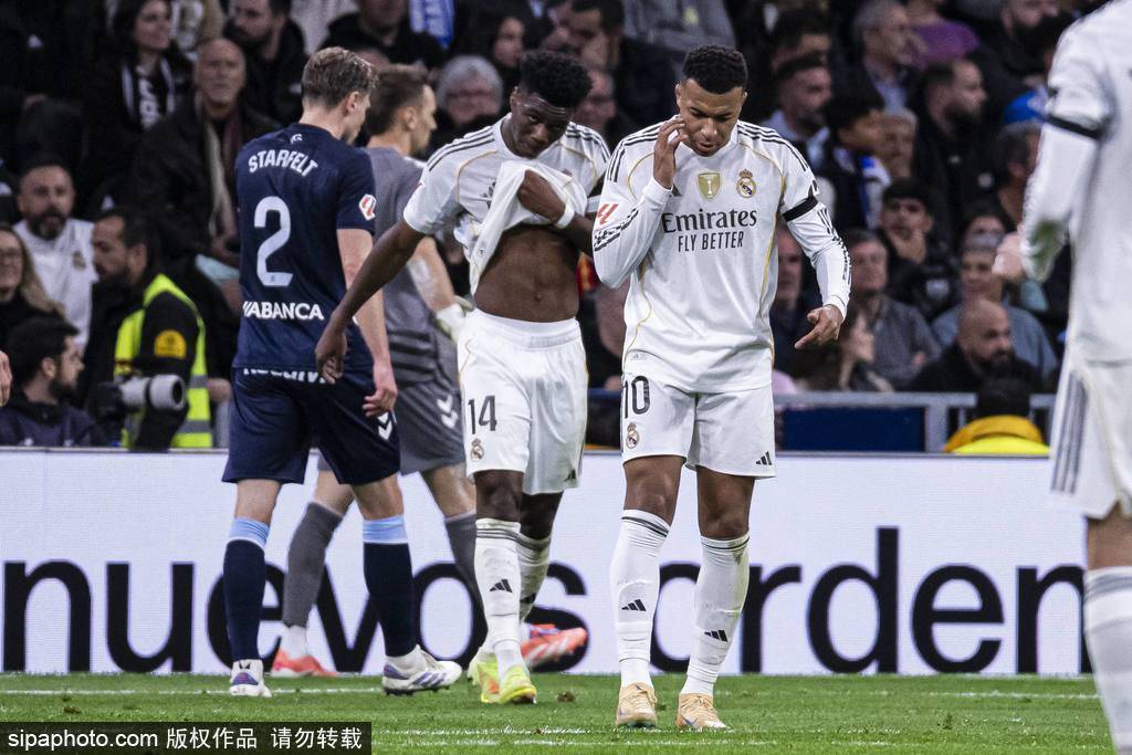 第45分钟,楚阿梅尼长传,维尼修斯推射被门将拉杜扑出。上半场结束,皇马0-0塞尔塔。